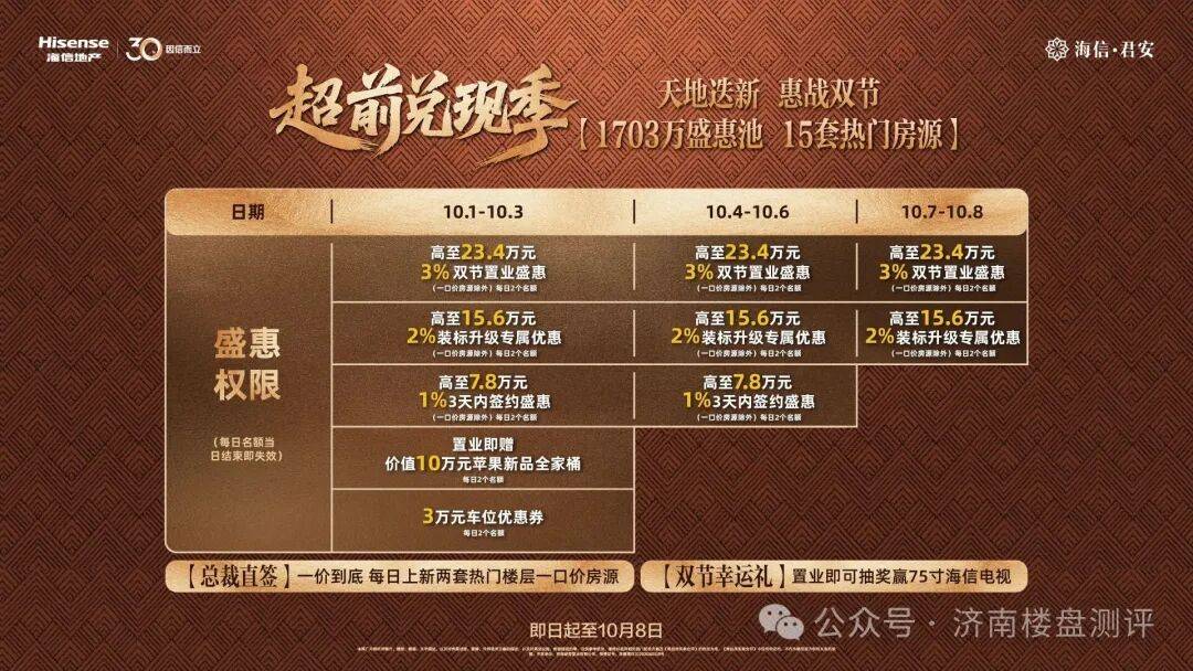 时间来到国庆黄金周,这是改善客户看房时间最充裕的日子。海信君安也推出了“超前兑付季”的优惠活动。