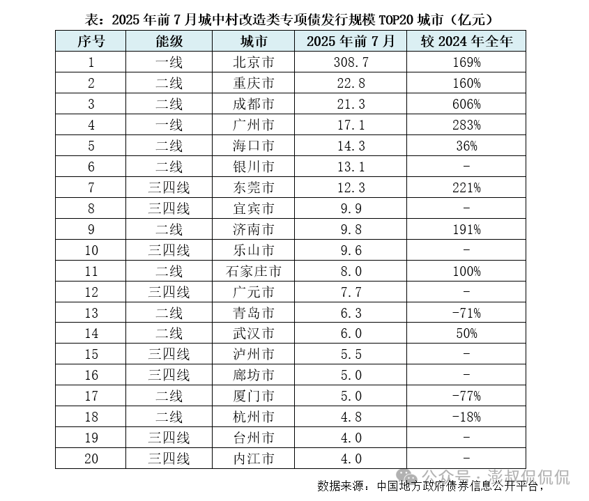 ),这个力度绝对是空前的。2025年前7个月,北京城中村改造类专项债发行规模达到309亿(