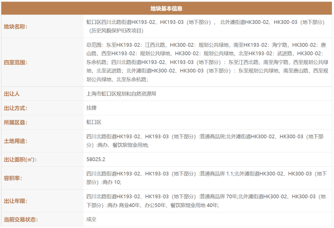 2021年2月,上海虹口城市更新建设发展有限公司(上海地产联合体)以111.35亿拿下了虹口区四川北路街道HK193-02(17街坊弘安里)、HK193-03(地下部分);